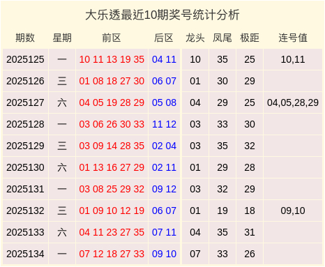 后分歧析:近十期后区奖号的大小比为13:7,上一期开出大大数09、10,本期良善后区开出小大数03、11。