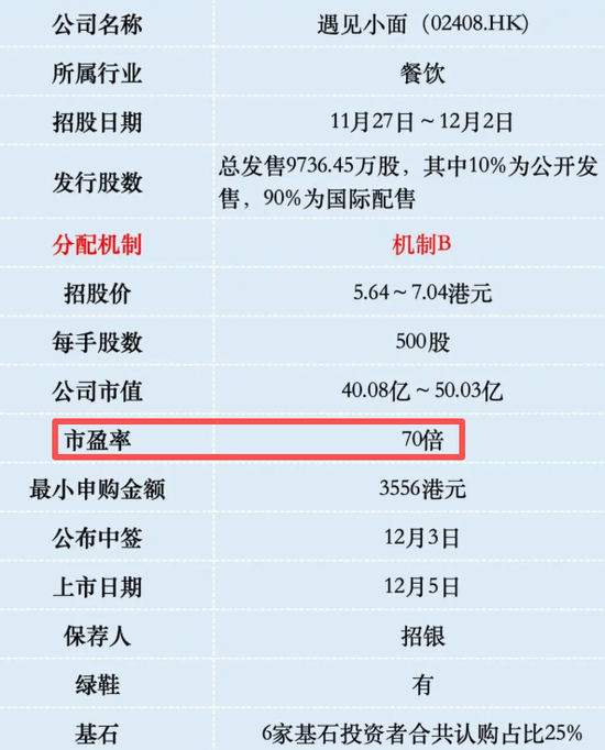 以碰见小面为例,上市初期的市盈率高达70倍.