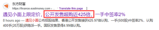 碰见小面香港公开发售接获425.97倍认购,属于逾额认购了,看似商场狂热,但上市首日却遭到大幅杀跌,老本套利彰着。