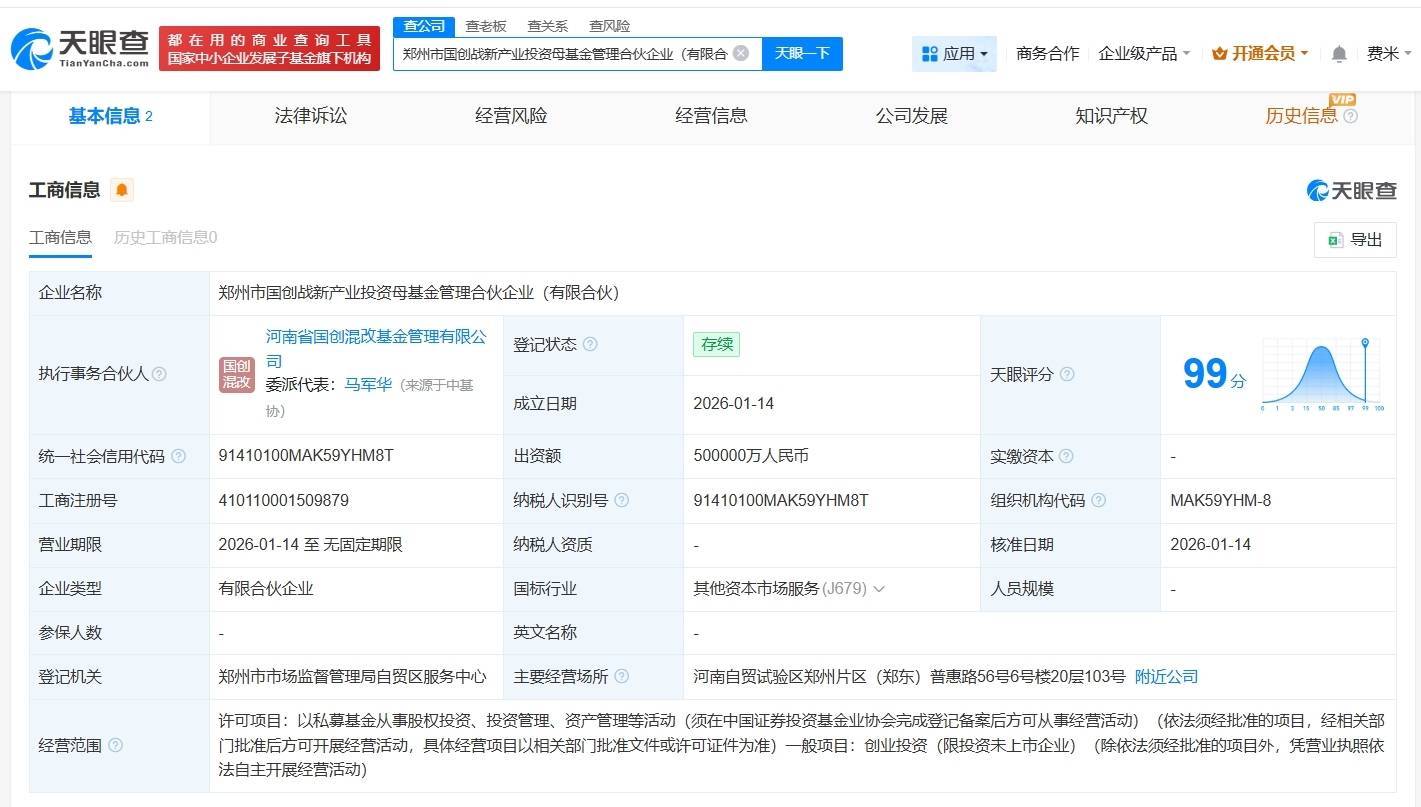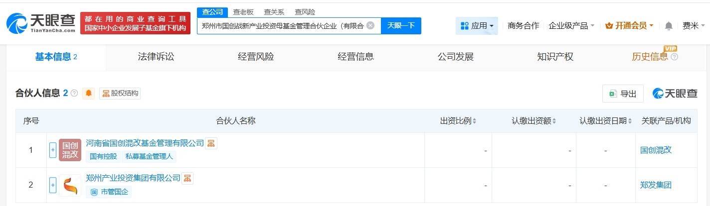 合资东说念主信息泄漏,该基金由河南省国创混改基金科罚有限公司、郑州产业投资集团有限公司共同出资。