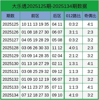 本期大乐透012路比参考:1:2:2。
